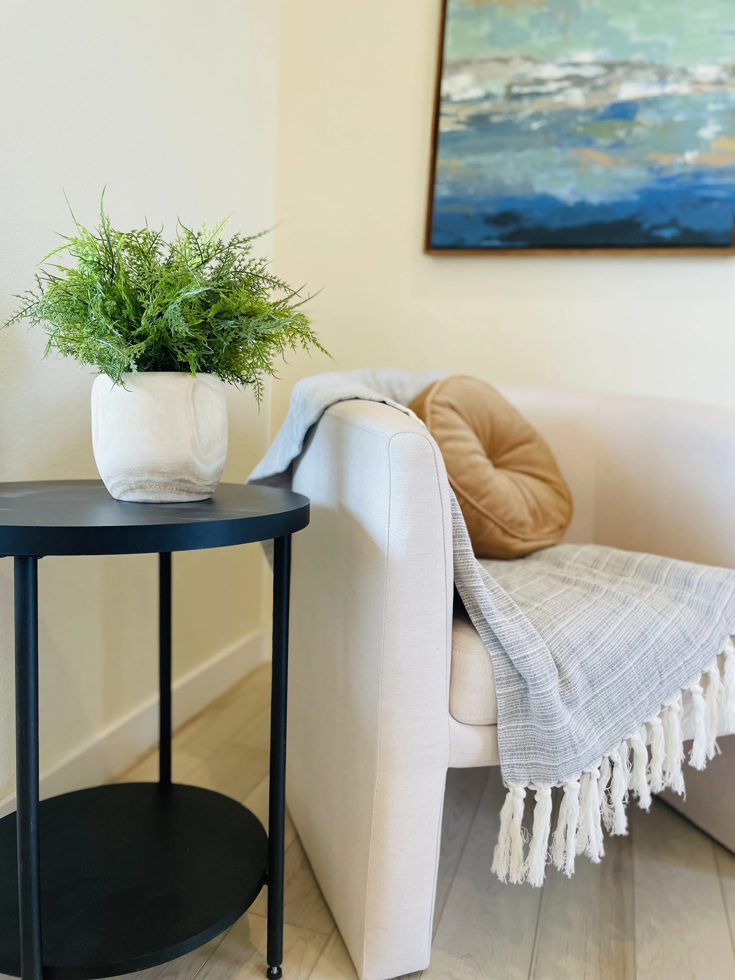 I offer occupied or unoccupied staging for homes. I will bring in stylish textiles, neutral art, greenery, lighting, furniture and other decor to help your space appeal to the broadest market, and look like it is living its best life, even if you are feeling frazzled. I am saying this with a smile, as I know how crazy and anxiety producing moving can be!